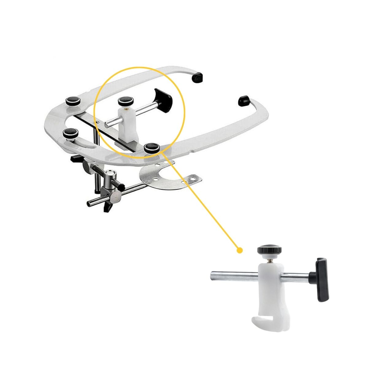 Base de Acoplamiento: La parte inferior del conjunto que se desliza y se fija sobre la barra transversal del arco facial.