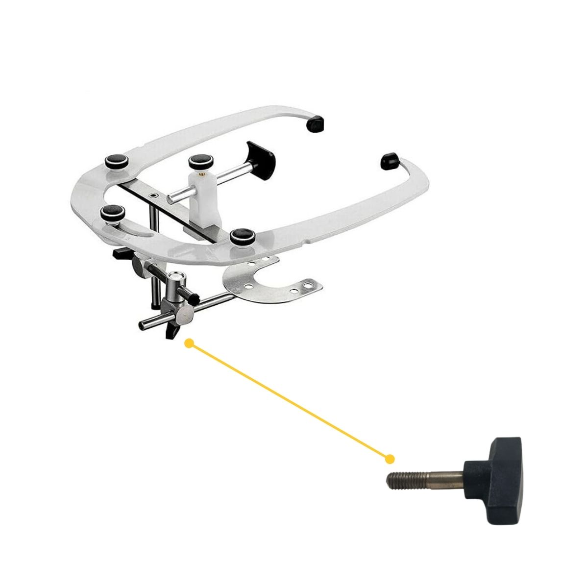 El Tornillo de Mariposa Central (también conocido técnicamente como Manípulo de Sujeción del Conjunto de Transferencia) es, probablemente, la pieza que más estrés mecánico recibe en todo el sistema del articulador. Su función es crítica: actúa como el «anclaje maestro» que une el registro del paciente con el instrumento.