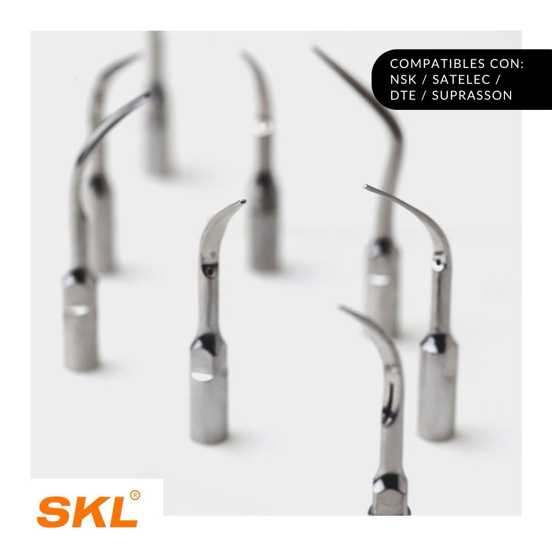 - Compatibilidad: Las puntas SKL suelen ser compatibles con una amplia gama de equipos de scaler ultrasónicos. (Woodpecker / EMS / Mectron / Jasmine)